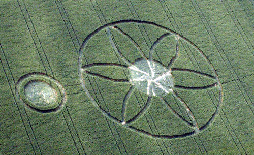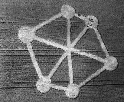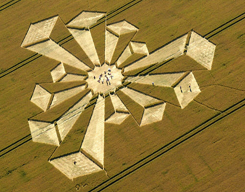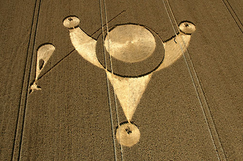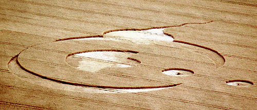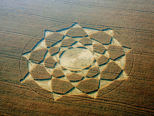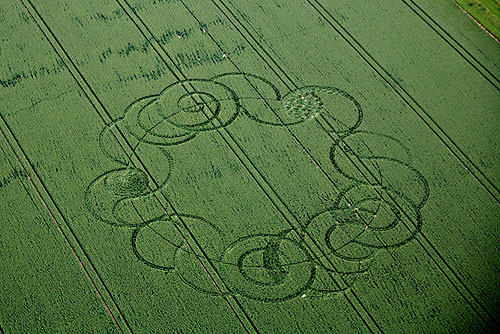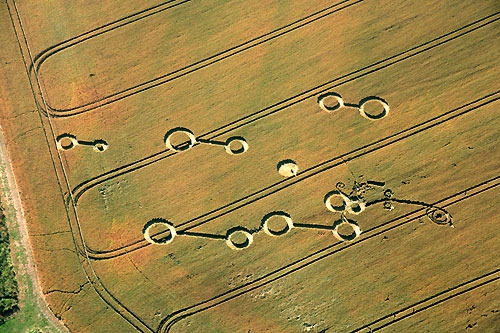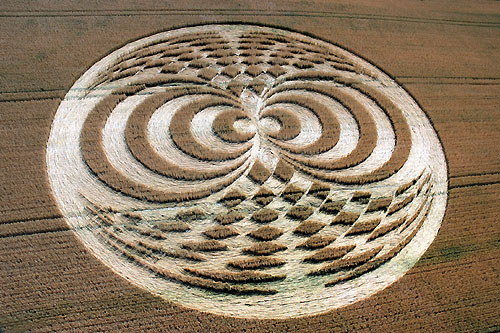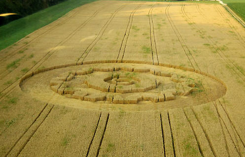 This pictures shows marks in cornfields generated by aliens using interdimensional technology.