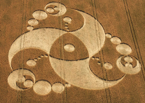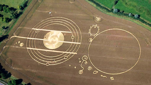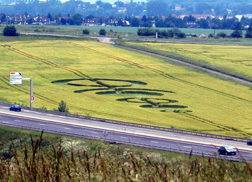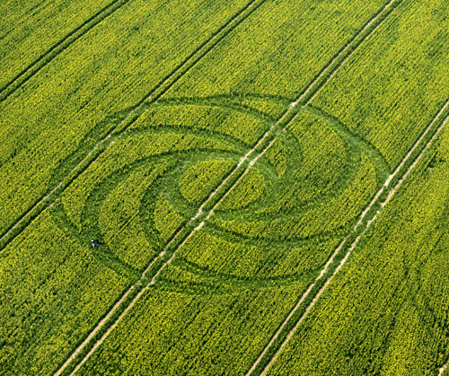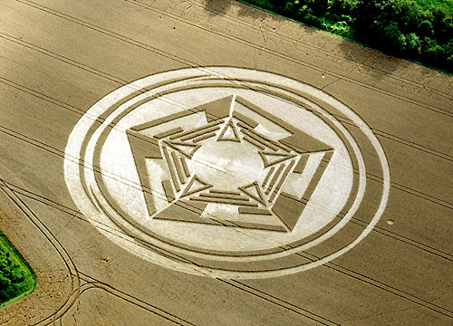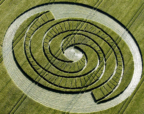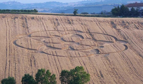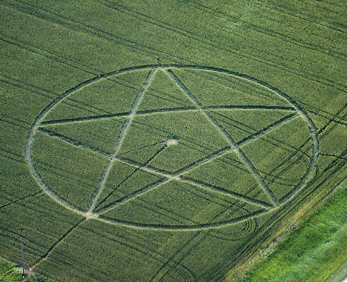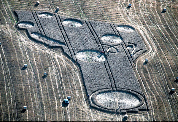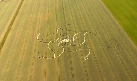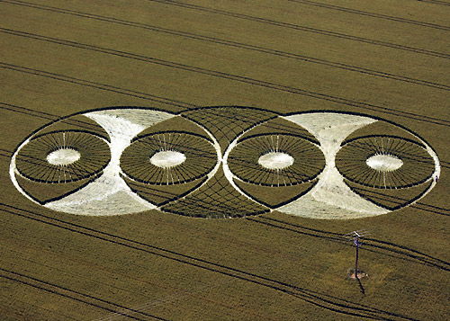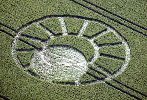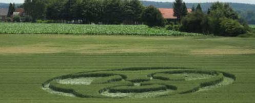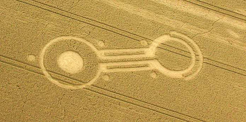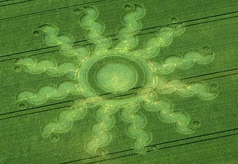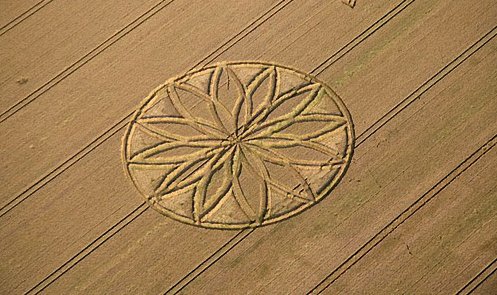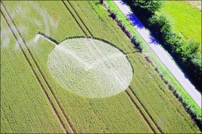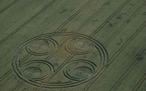 This pictures shows marks in cornfields generated by aliens using interdimensional technology.
